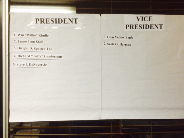 President: Willie Kindle, James Iron Shell, Dwight D. Spotted Tail, Richard Tuffy Lunderman, Steve DeNoyer, Jr. Vice President: Glen Yellow Eagle and Scott Herman. Treasurer: Byron Barney Wright and Muriel Fast Horse.