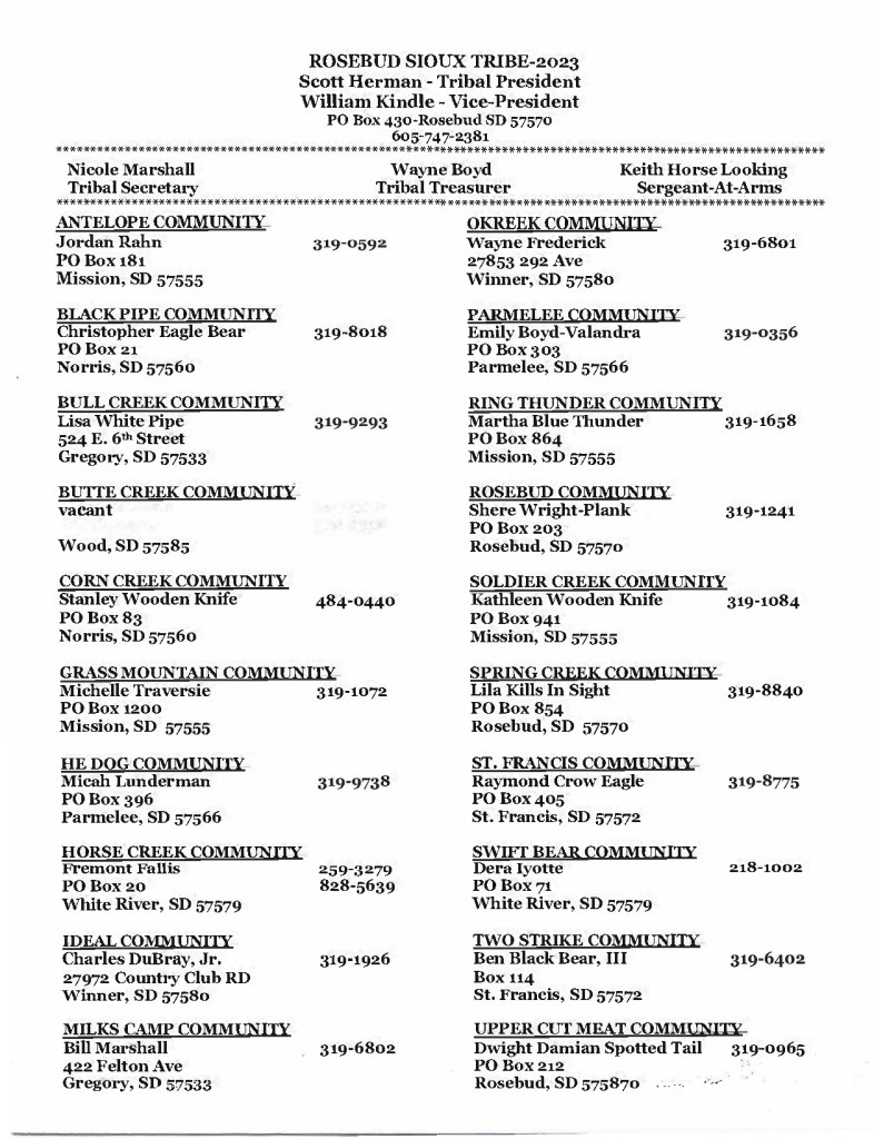 Tribal citizens can call the Election Office at 605-747-2381 for more information on how to file an affidavit or registering to vote in the special election for Butte Creek. The tribal council representative is elected at large for three (3) year term.